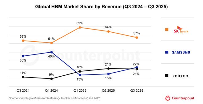 存储不是一个充分竞争市场,而是一个高度寡头化的市场,三大原厂合计占据超过九成供给份额,尤其在高端DRAM(HBM/DDR5)市场中接近100%。