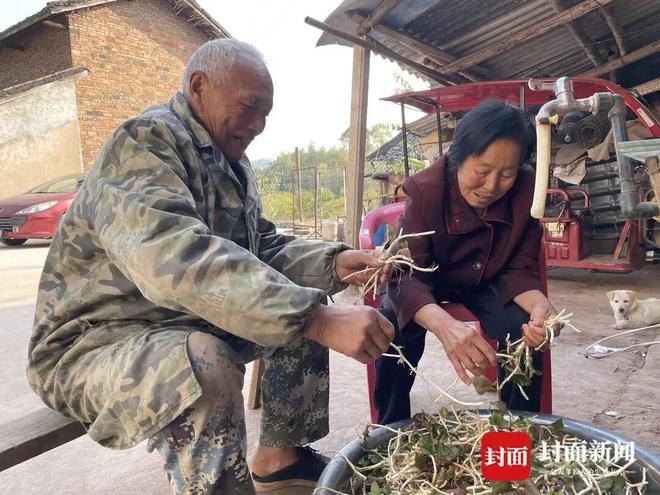 两位老人在摘折耳根