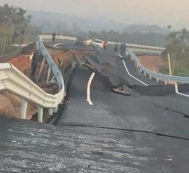 这起事件发生在琼海市博鳌镇的九曲路上,该路段属于省级在建交通项目,在事故发生时尚未竣工、未移交给养护部门也未出现在地图上。2月11日清晨7时左右,路面开始出现明显的滑塌迹象,并于上午9时许完全坍塌。事发前一周没有显著降雨,道路尚未对公众开放使用,也没有超重车辆通行记录,这一异常情况引发了外界对于工程质量的疑虑。
