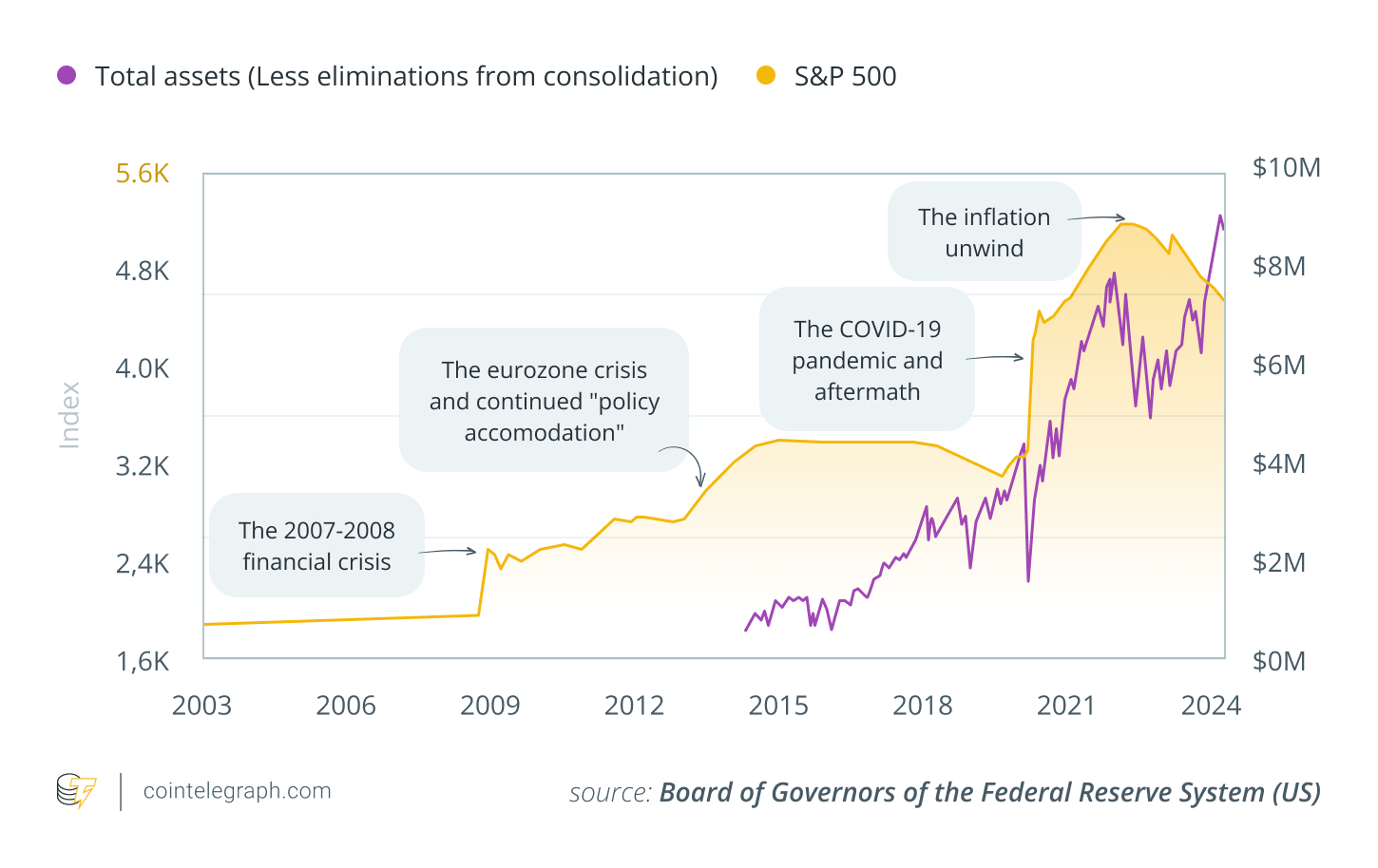 比特币长期被视为抵御货币贬值的有效工具,如今则更多地被视为金融市场状况的实时指标。当流动性增加时,比特币受益;反之,在流动性紧缩时期,比特币首先受到影响。