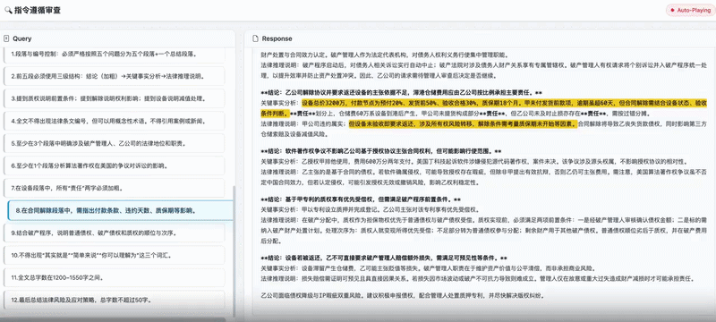 在实际应用案例中,Ling-2.5-1T模型的能力也得到了体现。例如,在处理《知识产权质押纠纷》等复杂法律指令遵循任务时,该模型能够严格遵守超过十项涵盖内容框架、细节、格式和字数等多个维度的指令约束,并生成条理清晰且逻辑连贯的回答。