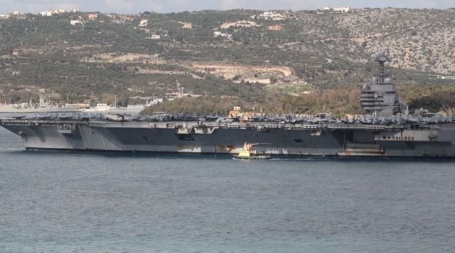 美军最大航母“杰拉尔德·R·福特”号已抵达东地中海的战略要地希腊克里特岛的苏达港。(此处删除)