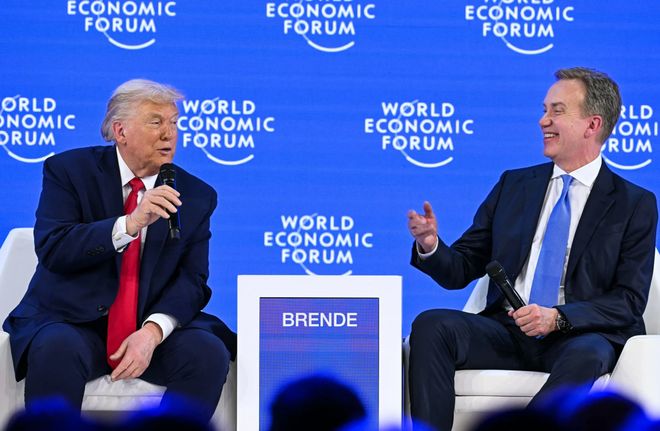 在达沃斯冬季论坛上,布伦德作为主持人对美国总统特朗普进行了采访。