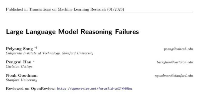 《大型语言模型推理失败》所做的,正是为这一方向奠定基础框架。