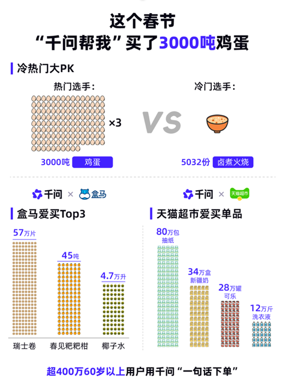 春节期间,“千问帮我”成为了新的年俗习惯,用户只需一句话就能轻松下单,超过400万60岁以上的老年人也体验到了这种便捷的AI服务。