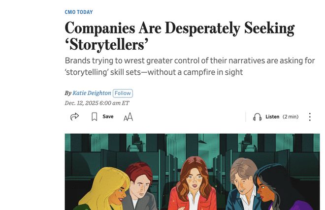 因此,“讲故事”的古老职位被赋予了新的价值,《华尔街日报》指出,在LinkedIn上包含这一关键词的工作岗位数量从2024年到2025年间翻了一番。