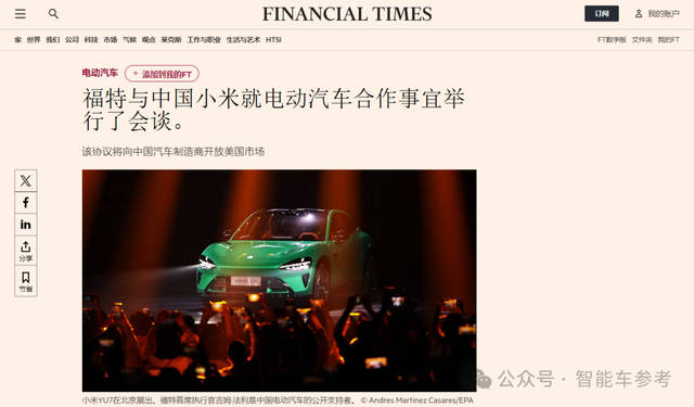 据《金融时报》报道,知情人士透露福特正与小米讨论合作事宜,目前仍处于初步阶段。