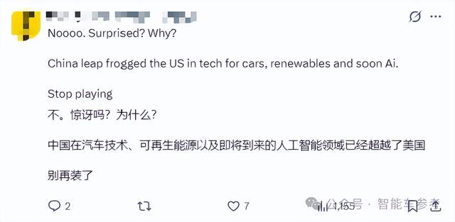 在辟谣之后,一些网友感到遗憾和不解,认为中国在电动汽车、可再生能源等领域已超越美国: