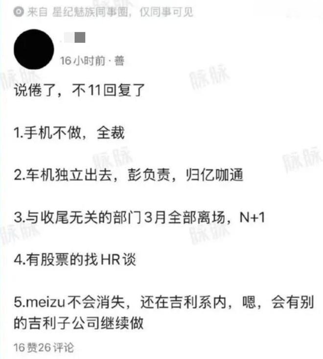 据脉脉App上发布的内部帖子透露,星纪魅族已经做出了以下具体调整: