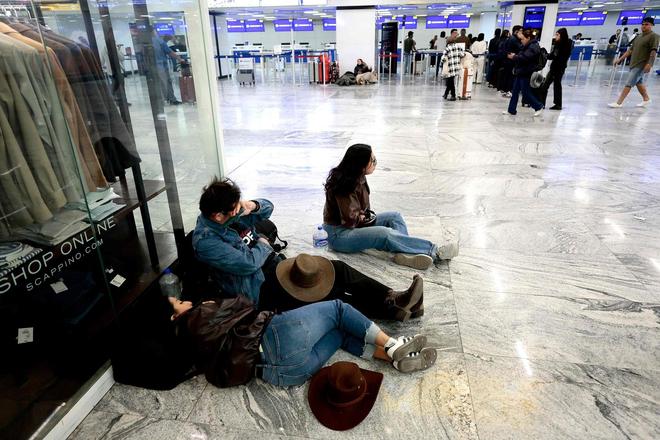 当地时间2月23日,滞留乘客坐在瓜达拉哈拉机场的地板上等待