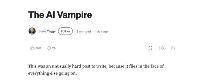 当你与AI协同工作数小时后,尽管代码量激增,但关机那一刻却感到前所未有的疲惫?这种现象被雅吉称为:“AI吸血鬼”(The AI Vampire)。