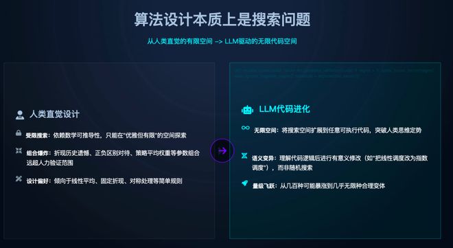 这让搜索空间从人类直觉所及的几百种可能,暴涨到LLM能触及的几乎无限种合理变体。