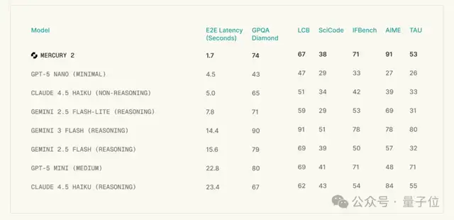 这表明Mercury 2在保持极高生成速度的同时,没有牺牲智能水平。