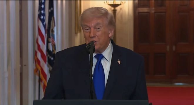 当地时间2月23日,在白宫的一场活动中,特朗普发表讲话。图:视频截图