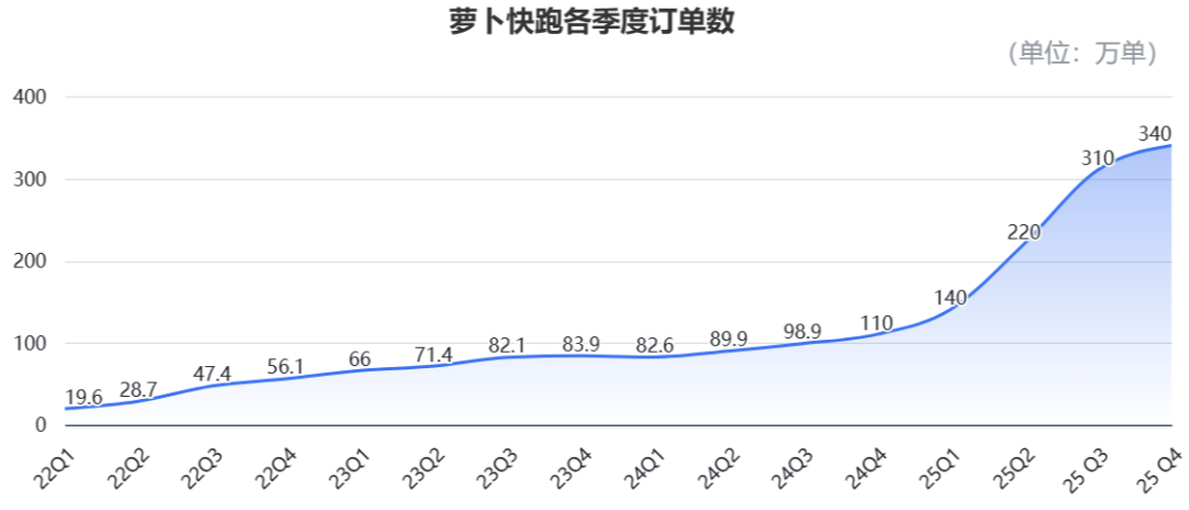 同样在Q4时期,萝卜的周订单峰值超过30万单,日均最高达到4.3万单,每分钟接近完成30单。