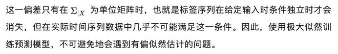 当前时间序列预测模型普遍采用基于极大似然估计的方法,使用 MSE 作为损失函数。然而,在标签序列存在自相关性的情况下,这种方法会导致偏差。