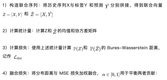 研究进一步指出,通过最优传输领域的理论推导可以证明:联合分布的 Wasserstein 距离是条件分布 Wasserstein 距离期望的一个上限。因此,最小化历史 - 预测联合分布与历史 - 标签联合分布之间的 Wasserstein 距离能够有效实现对齐任务。