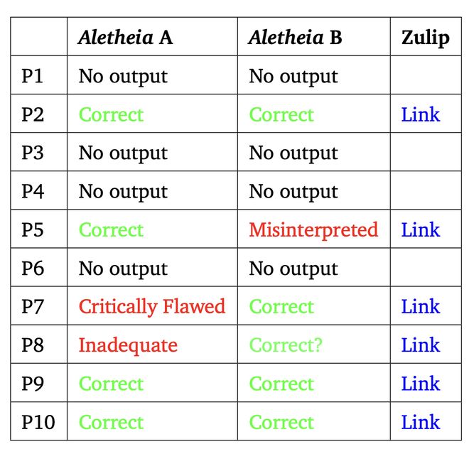 研究团队运行了两个版本的Aletheia(仅在底层基础模型上有所不同),它们都由Gemini DeepThink提供支持。根据多数专家评审意见,这两个系统共同解决了10道题中的6道。