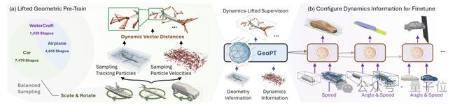 GeoPT创新性地引入了合成动力学(Synthetic Dynamics),将静态几何数据提升到动态空间中,使模型能够从无标签数据中学习粒子轨迹变化,并理解物理现象的本质。