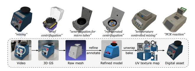 再者,生物实验室中广泛存在的透明容器与液体样本对视觉识别构成了挑战,这些场景往往在现有的仿真系统和评估标准中被简化或忽略。