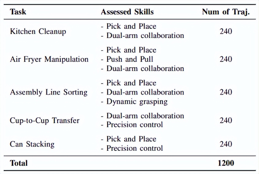 评测基准缺乏统一标准:机器人的测试通常需要交互式迭代验证,并且无法使用离线数据进行评估。此外,针对人形机器人的双臂协作和灵巧手操作等特性的标准化评测体系尚不完善。