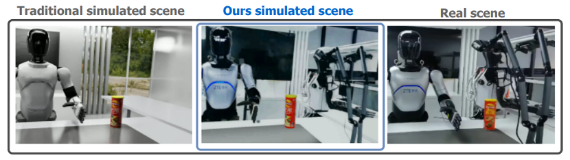上图:传统仿真、RealMirror重建与真实场景之间的对比。结果显示,RealMirror的重建效果在视觉真实性上显著优于传统的渲染技术,并接近于现实情况。