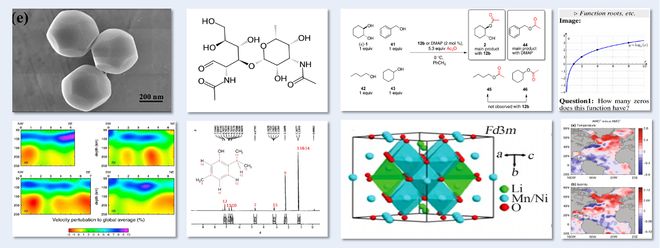 在微观层面,它能够解析分子式、反应过程、NMR谱图、冷冻电镜图像和晶体结构等;