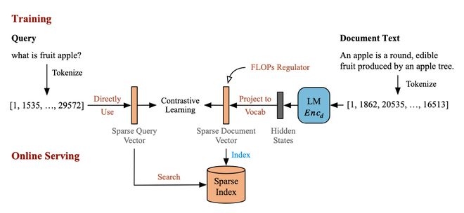 在稀疏检索中,LightRetriever 将查询侧进一步简化为词频映射,完全移除了可学习的模型参数。通过 Doc 侧的 LLM 学习类 SPLADE 方法的 TF-based 稀疏向量,实现了无 LLM 的高效化在线推理。