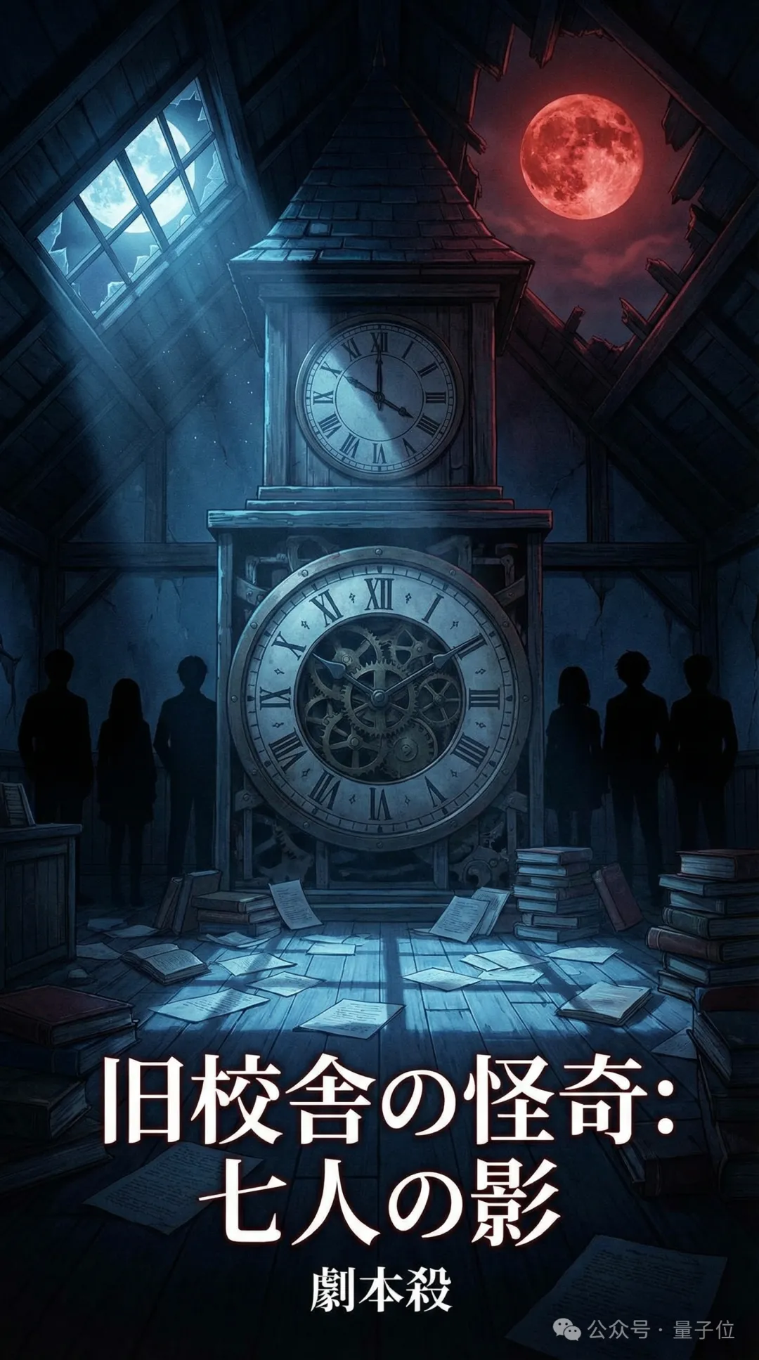 视觉这块也没拉胯,那张主海报用旧校舍大钟表配上诡异红月,一看就是典型的日式校园怪谈氛围。