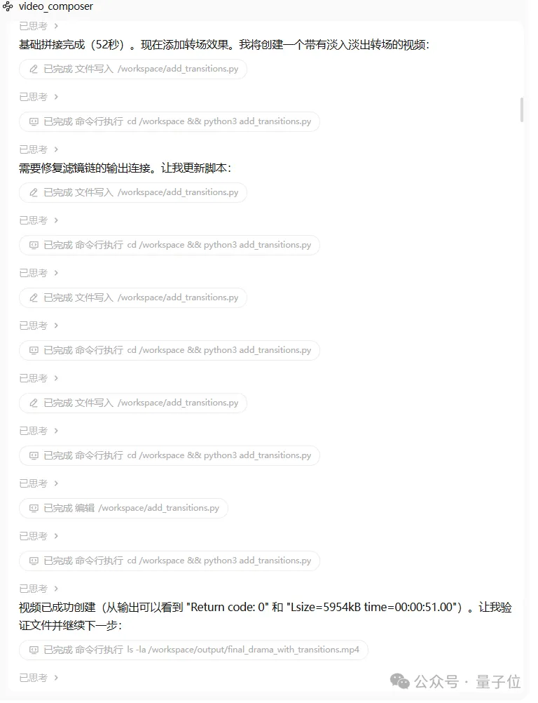 但接下来的操作很快就打了我的脸,Expert并没有把拼接好的视频直接当成品,而是开始另起炉灶写Python代码来向视频中添加转场。