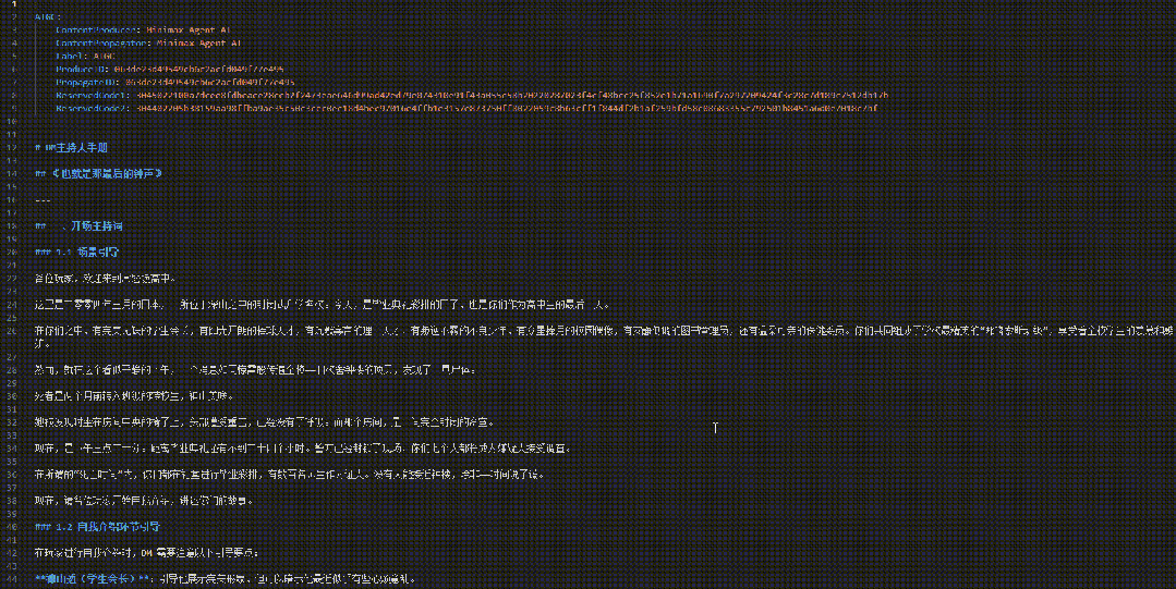 首先,这个Expert解读了我的指令,根据目标给出了一份剧本分析报告,确定了人物和场景,以及视觉风格。