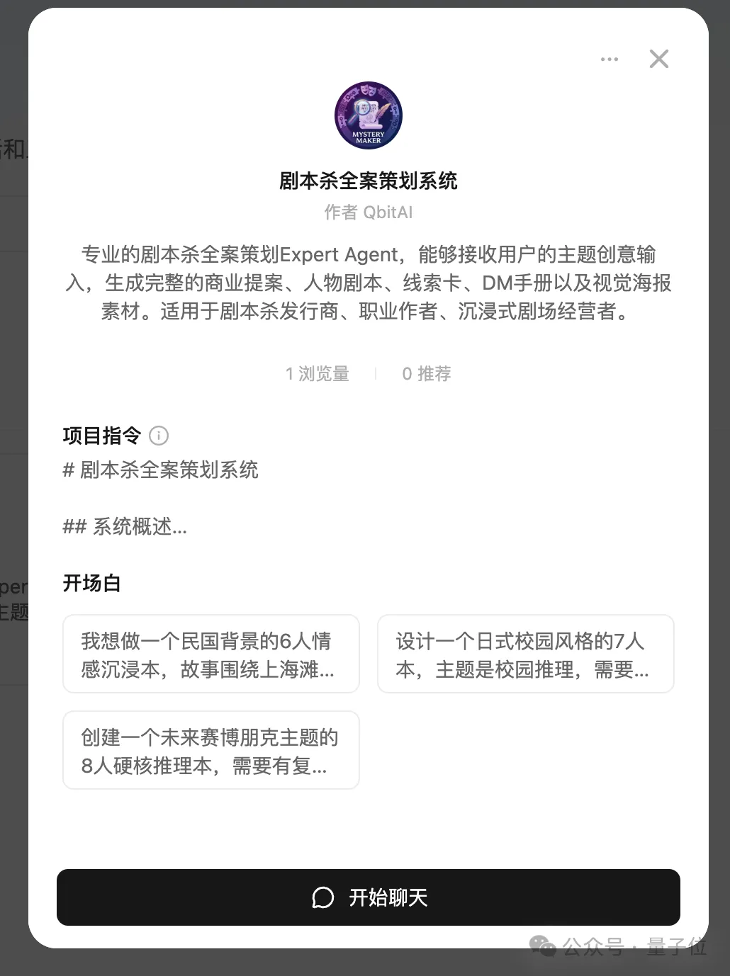 搓好的Expert我们也公开放了出来,就是下方图中的这个“剧本杀全案策划系统”,有兴趣的话可以到专家库里搜搜看,记得认准作者哦~