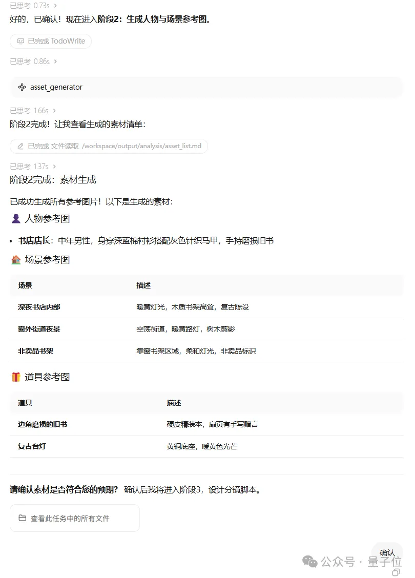 这里我本以为它会直接设计场景,然后开始生成图像,但多出来的这一步参考,也确保了后面的人物一致性,可以说是考虑得十分周到了。