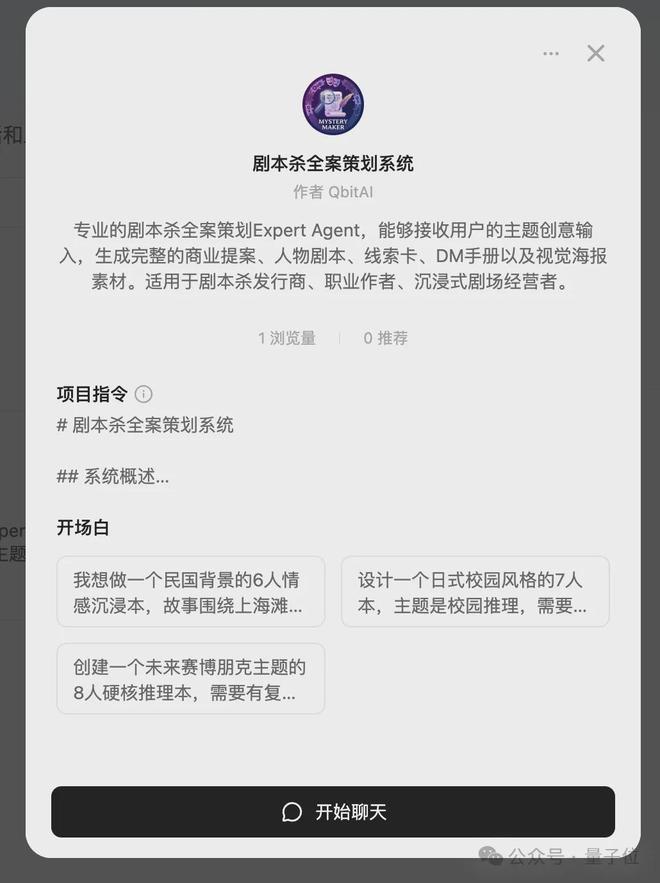 搓好的Expert我们也公开放了出来,就是下方图中的这个“剧本杀全案策划系统”,有兴趣的话可以到专家库里搜搜看,记得认准作者哦~