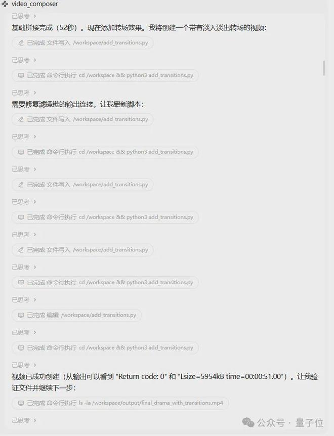 但接下来的操作很快就打了我的脸,Expert并没有把拼接好的视频直接当成品,而是开始另起炉灶写Python代码来向视频中添加转场。
