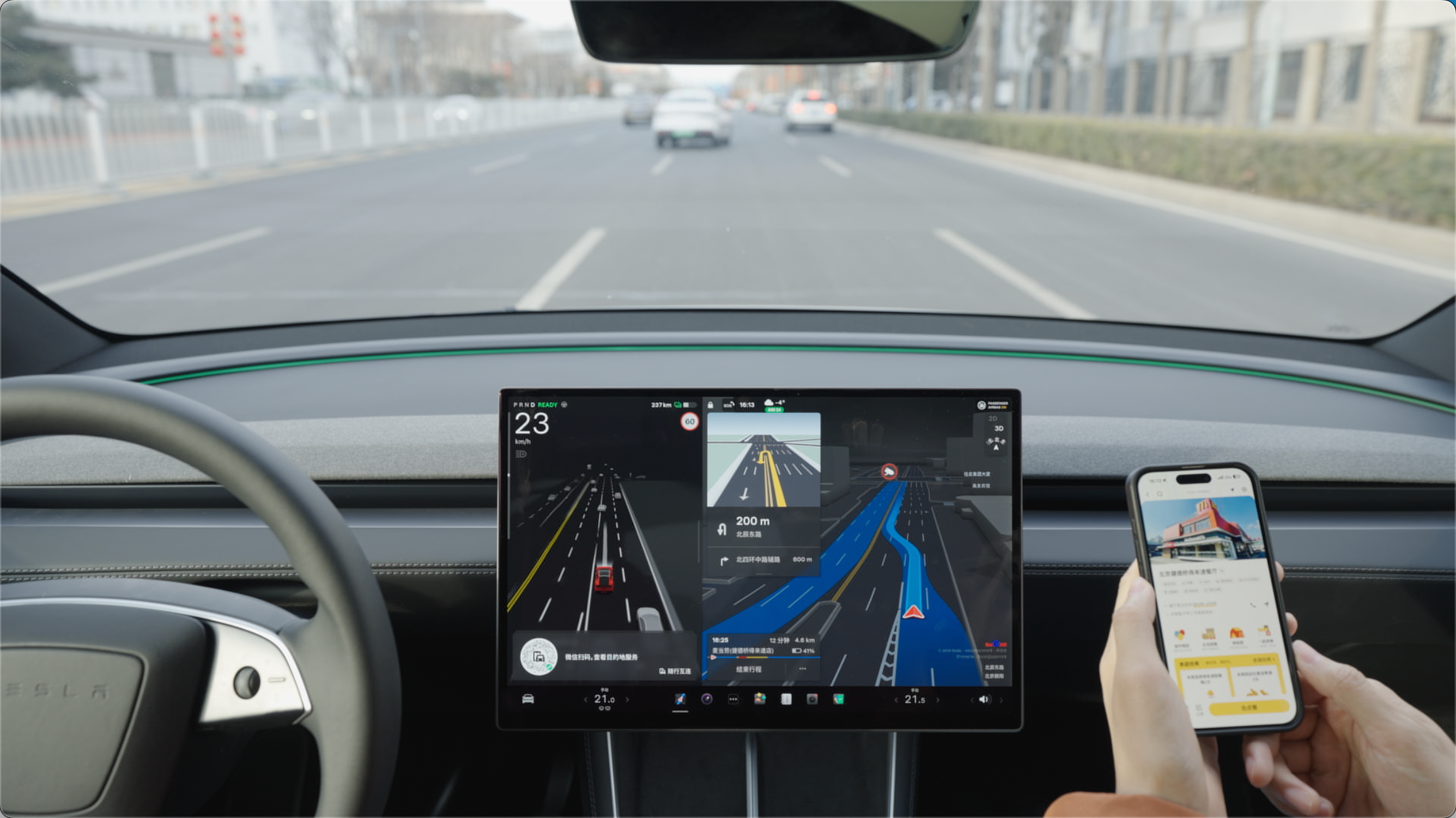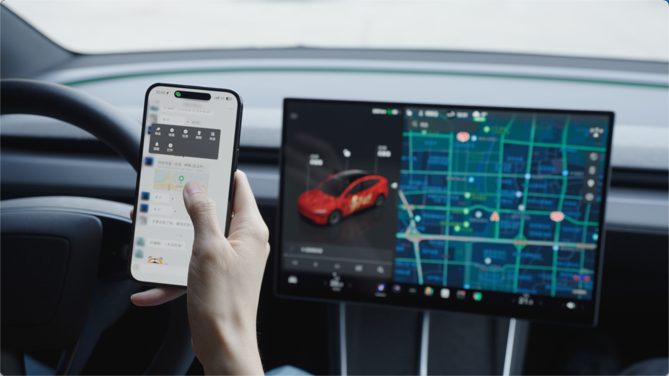 利用腾讯的随行互连功能,“微信互联”能够实现在手机与车载系统之间无缝传输位置信息。用户可以将微信对话中的地点卡片,或从多个地图应用获取的位置数据直接分享到特斯拉车机,并立即启动导航。