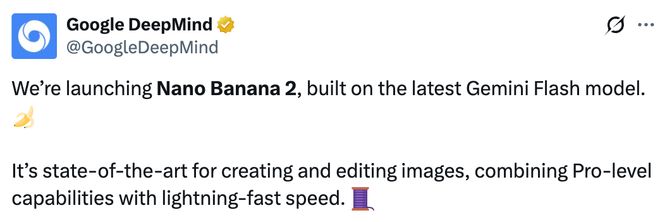 Gemini应用:Nano Banana 2将取代Fast、Thinking和Pro版本中的Nano Banana Pro。Google AI Pro和Ultra订阅用户仍可通过三点菜单重新生成图像,在特定任务中继续使用Nano Banana Pro。