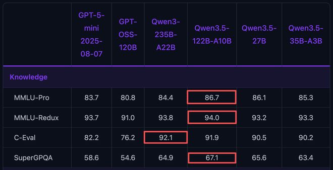 三、基准测试:122B大而全,35B强在智能体,27B工程实用度高