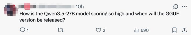 Qwen3.5-27B的模型参数更小,也做到了“小规模强性能”。一位网友称:“Qwen3.5-27B型号的得分为何如此之高?GGUF版本何时发布?”另一位网友也称:“这次发布太棒了!我对27B参数模型特别感兴趣,不过以后你们能不能把GGUF模型也和主版本一起发布?这样用户就能更快地用上这个模型。”